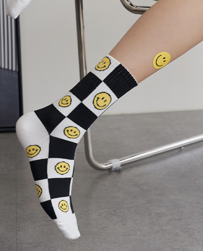 Checkered Smile Face Socks