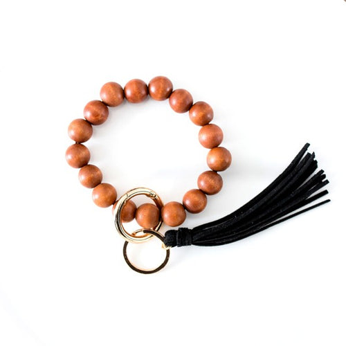 Wood Key Ring Bangle Bracelet w/ Tassel