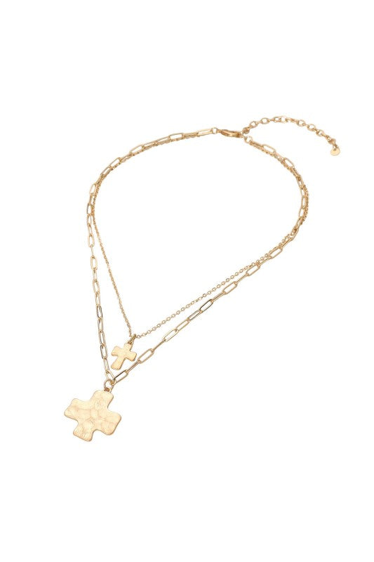 Make a bold statement with this striking double-layered necklace, featuring dual hammered metal cross pendants that add modern edge to any look. The 16" + 3" adjustable chain allows effortless styling versatility—wear it solo for understated elegance or layer it with other pieces for dynamic depth. Each cross pendant measures 0.9" x 1", creating the perfect proportion for both casual and dressed-up occasions. Crafted with lead and nickel compliance in mind, this thoughtfully designed piece is an ideal gift for anyone who loves meaningful, fashion-forward jewelry that transitions seamlessly from day to night.