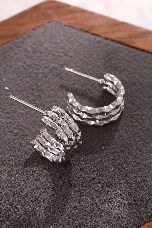 These stunning 18K Stainless Steel Hammered Huggie Hoop Earrings combine elegance with durability. The luxurious gold finish and distinctive hammered texture add sophistication to any outfit, while the compact .5" size offers versatile wearability. Crafted from high-quality, waterproof stainless steel, these earrings are lead and nickel compliant, ensuring they remain tarnish-free for lasting beauty. The secure stainless steel post provides comfortable all-day wear.