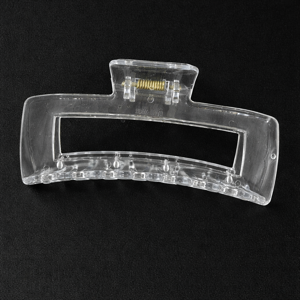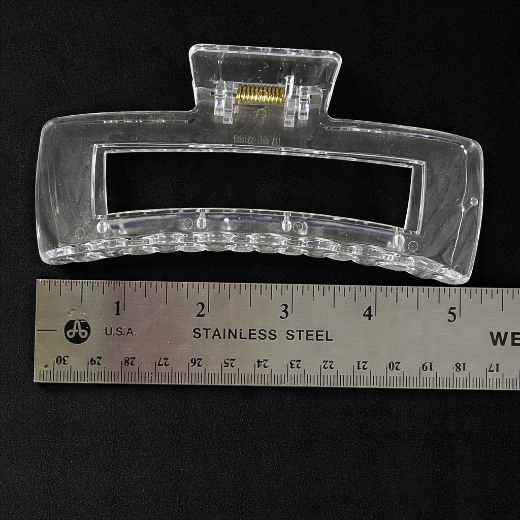 Jumbo hair clip designed for thick and voluminous hair. This 5-inch clear clip holds securely without slipping, making it perfect for everyday styling. Simple, functional, and versatile for any hair type.
