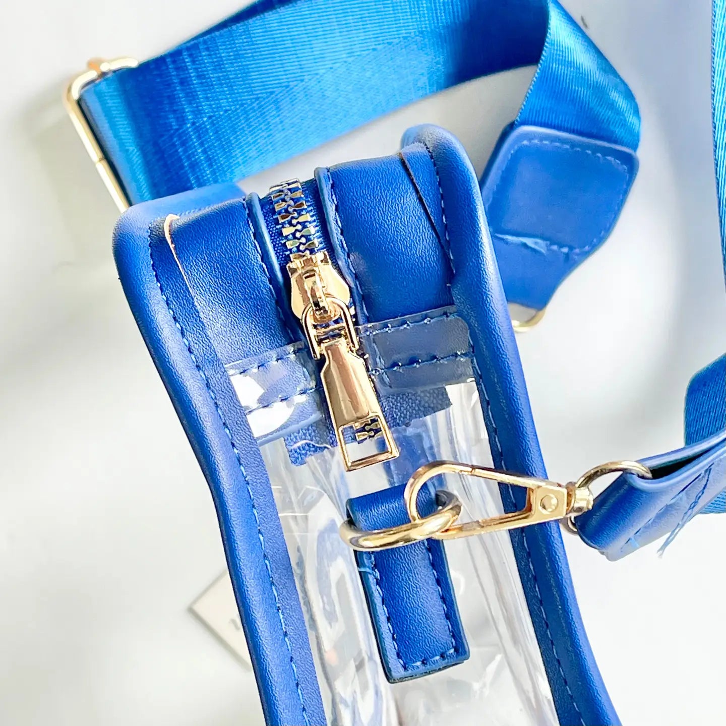 Carry your essentials in style with this stadium-approved clear bag, perfect for events, concerts, and game days. Measuring 7" wide × 5.5" tall × 2" deep, it offers practical visibility while meeting venue requirements. The royal blue trim and gold top zip closure add a polished touch, while the KC letters on the front showcase your team spirit. An adjustable crossbody strap keeps your hands free, and the lightweight design makes it comfortable to wear all day long.