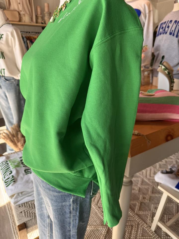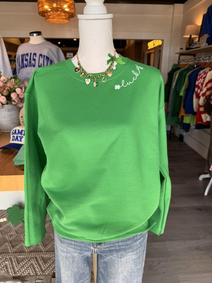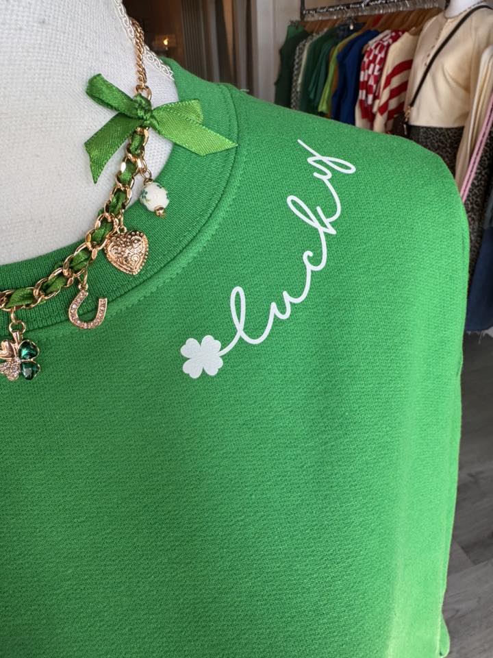 Elevate your casual wardrobe with this lucky neckline sweatshirt, featuring a trendy raw hem on the sleeves and flattering side slits along the seams. The design is DTF printed onΒ Gildan ensuring durability and comfort. Perfect for layering or wearing solo, this piece combines style with everyday wearability.