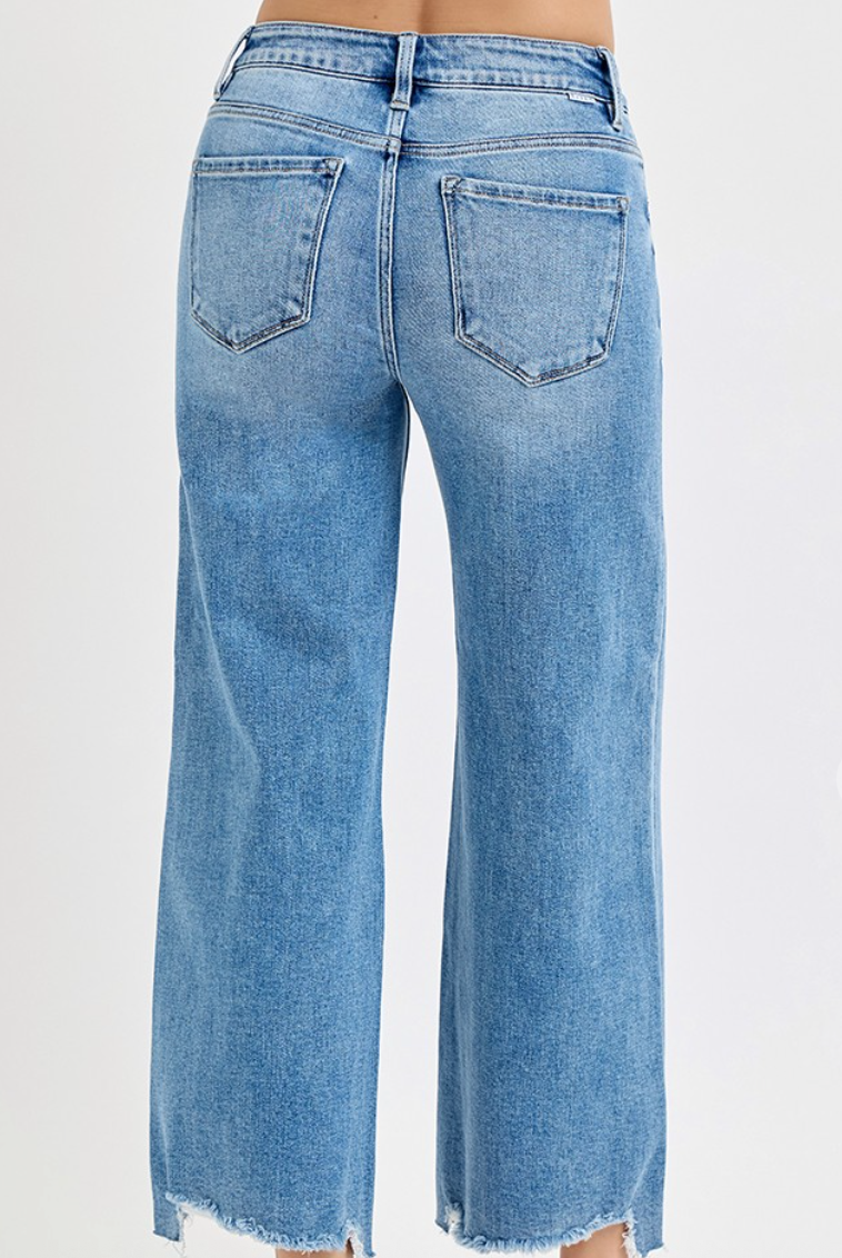 Medium Wash High-Rise Crop Wide-Leg Jeans
