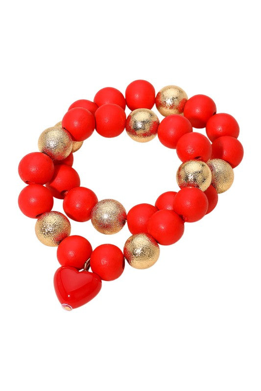 Add a pop of personality to your wrist with this charming two-piece bracelet set! Each stretchy bracelet features an adorable chunky heart metal charm that's impossible to miss. With a comfortable 1" height and 0.7" x 0.6" charm, these bracelets slip on effortlessly and adjust to fit any wrist size. Mix and match the available color combinations—bold red, soft pink, or a fun red-and-pink duo—to match your mood or outfit. Perfect for layering, gifting, or stacking with your favorite accessories.