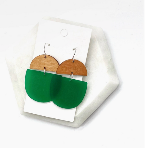 Green & Wood Deco Drop Earrings