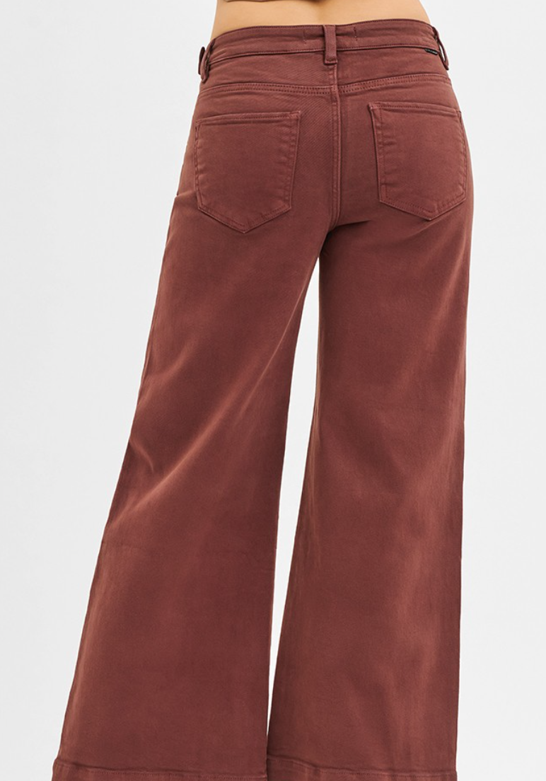 Chocolate Brown High-Rise Long Crop Wide-Leg Jeans