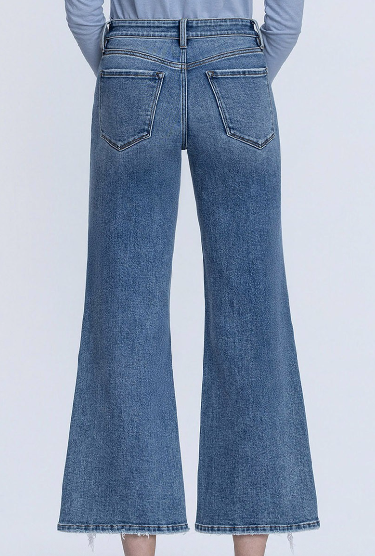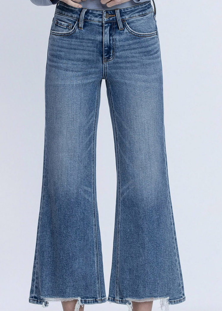 Elevate your denim game with these mid-rise crop vintage flare jeans. Crafted from a comfortable stretch blend of cotton, polyester, and Lycra, they offer the perfect balance of style and wearability. The medium wash and distressed front hem deliver that coveted vintage aesthetic, while the cropped length and flared silhouette create a flattering, on-trend look. With a 9½" rise and 5-pocket construction, these jeans are designed to feel as good as they look. Perfect for pairing with your favorite tops and sneakers or boots.