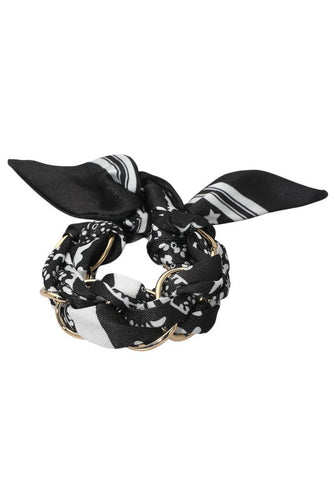 Animal Print Fabric & Hammered Metal Tie Bracelet