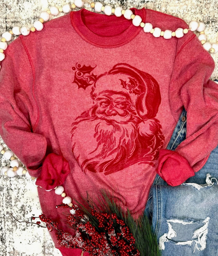 Faux Yarn String Santa Acid Wash SOFT Sweatshirt
